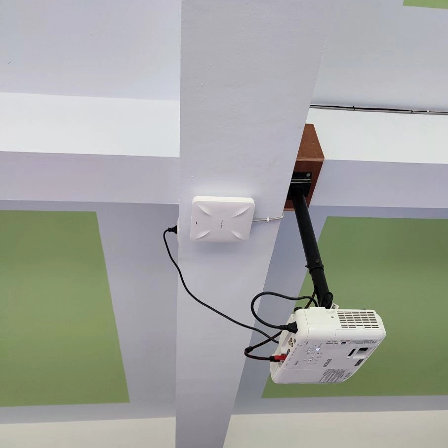 Pada proyek kali ini, kami melakukan konfigurasi dan pemasangan 20 access point yang dipasang di setiap kelas, serta 3 switch manageable untuk distribusi internet di setiap lantai. Penggunaan switch manageable membuat pembagian sub jaringan untuk setiap kelas menjadi lebih mudah, sehingga lalu lintas jaringan menjadi lebih efisien.